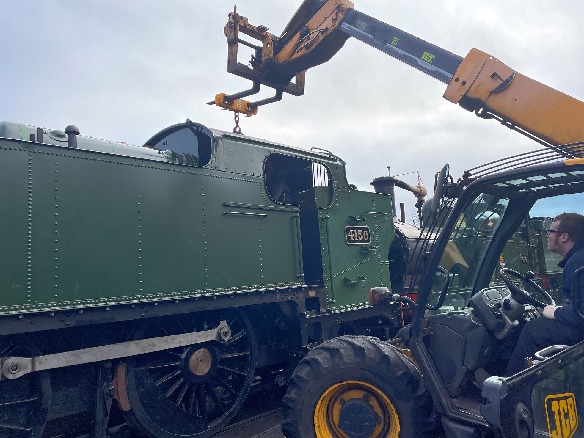 Today's job was to fit the cab roof to the loco. Dave Mc came in early to assist with the shunt that was needed to get the wagon, with the cab roof and the loco in the correct position. Slings were attached to the cab roof and it was lifted onto the loco using the JCB. The cab roof was bolted back down with just three or four bolts needing further work to fit correctly.