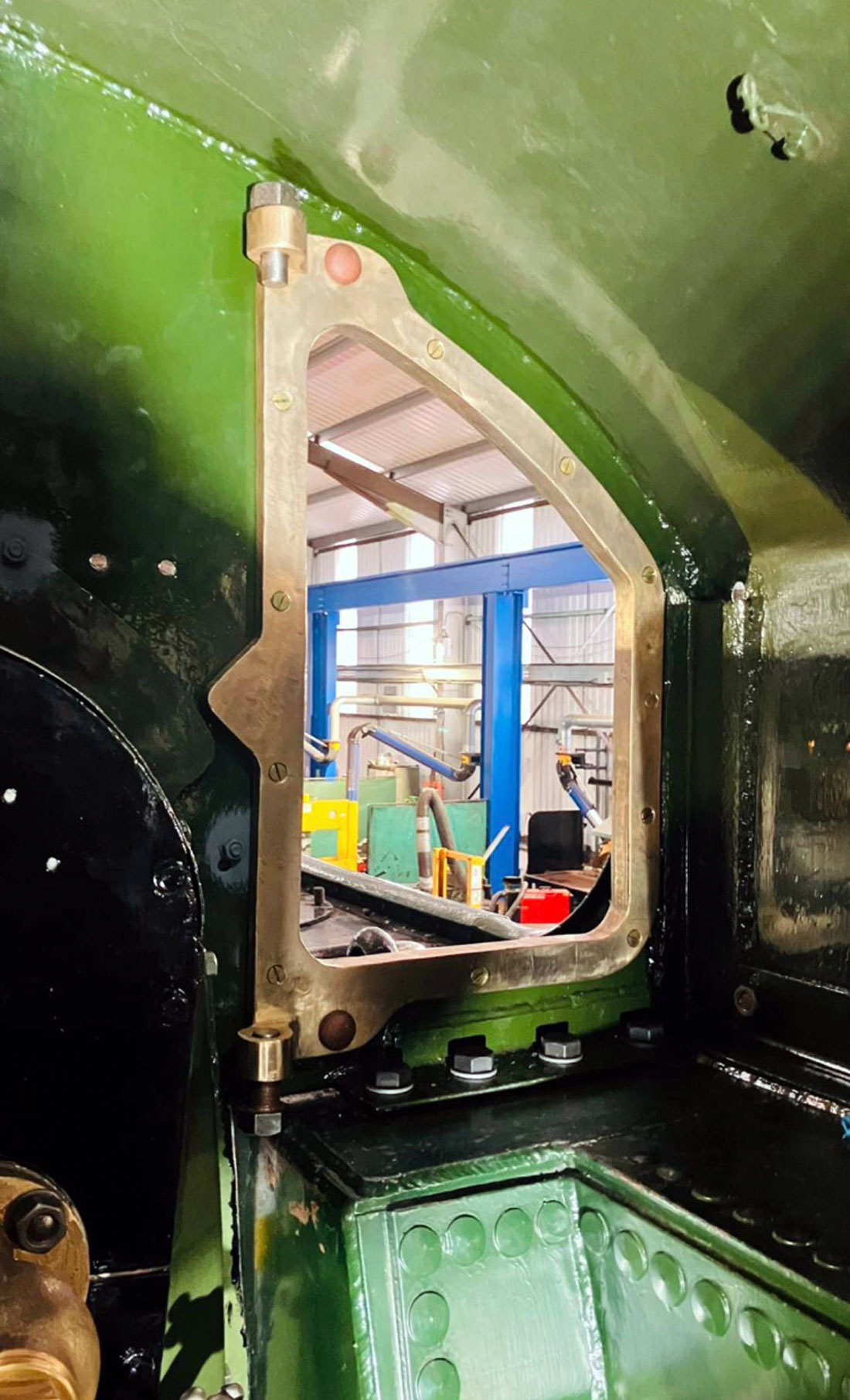 We received a list earlier in the week of jobs the full-time staff would like us to do. First job was fitting the reversing lever quadrant, then the drain cock operating lever. When fitted it was noticed that the top of the lever was close to the bottom of the lubricator. Most of the bolts were replaced in the floor plate. The vent pipe was fitted in the bunker. And finally the window frames were fitted in the cab, again a little fettling on the one screw.